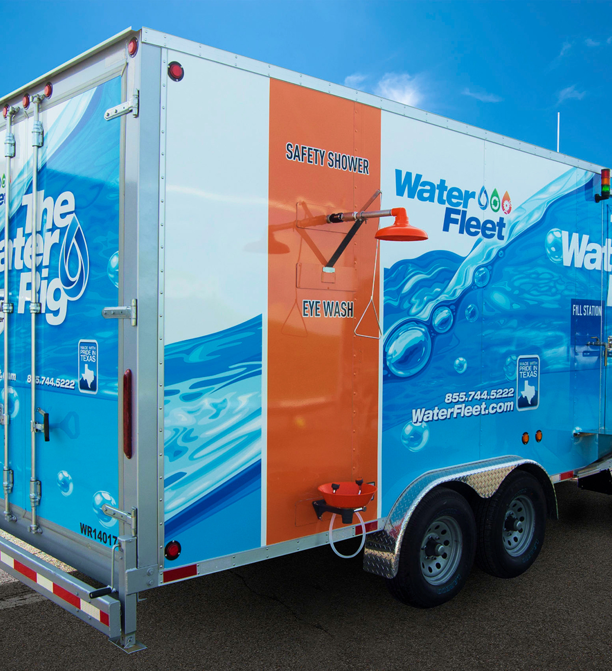 The first WaterFleet system, named Allison Lee, wrapped in custom branding on a Texas oilfield site.